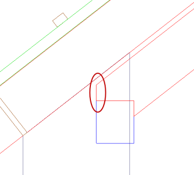 Si une coupe avec accroche est définie pour le raccord « Chevron contre panne » présent dans la fenêtre « Chevron libre », les arêtes longitudinales du chevron doivent impérativement croiser la panne ( Image 1).