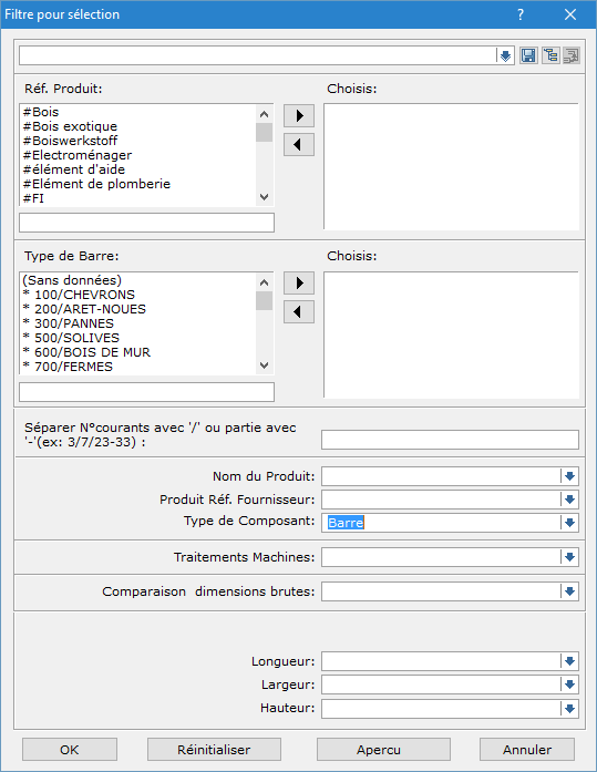 Vous devez adapter les types de composants qui doivent être activés en fonction de votre projet: S’il contient des panneaux ou des parties métalliques que vous devez fabriquer, il vous faudra choisir si vous avez besoin de les afficher ou pas. Dans la grande majorité des cas, vous n’aurez à activer que le type de composant « barre »: