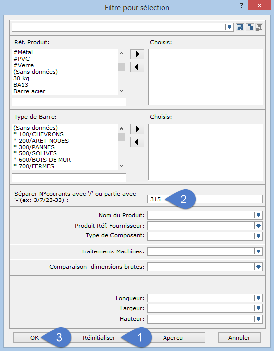 Le transfert machine filtre automatiquement les composants dont les dimensions sont hors limites (section trop importante, composant top long ou trop court). Les composants transmis avec des valeurs limites inadaptées sont transmis en machine mais la réalisation des usinages apparaît comme impossible à la machine. Il convient donc de vérifier les valeurs limites dans l’onglet Capacité machine et de les adapter aux capacités réelles de votre centre d’usinage.